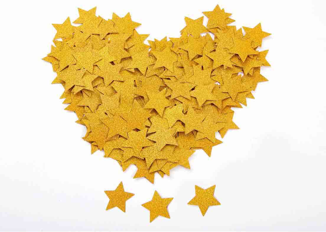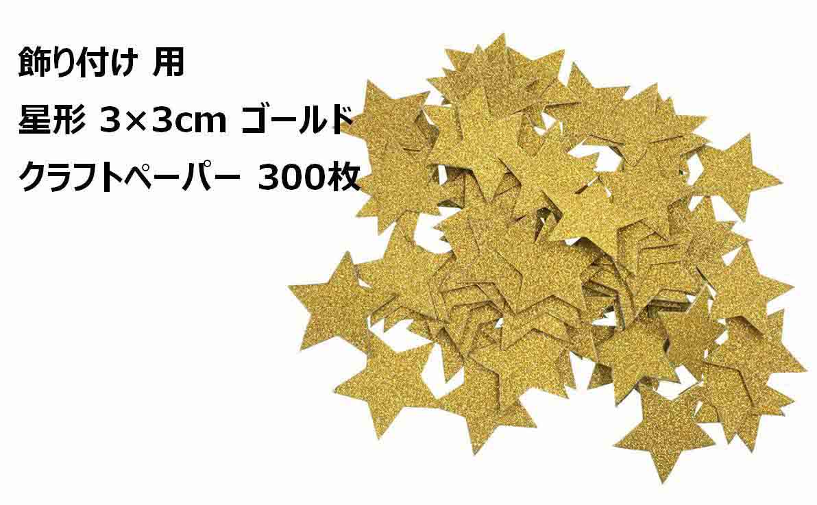 飾り付け 用 星形 3×3cm ゴールド クラフトペーパー 300枚セット RFIDケース付 結婚式 誕生日 クリスマス パーティー 【送料無料】mak-a64